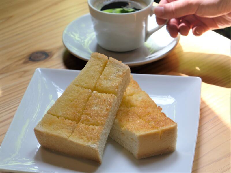 7時から10時の間、バター・チーズ・小倉トーストにプラス300円でコーヒーや紅茶、